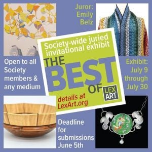Jul 9 - 30, 2023, Reception Thu Jul 13, 5-7 pmThe LexArt Society-wide Juried Invitational Exhibit The Best Of LexArt returns once again this July!