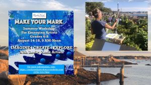 Rocky Neck Art Colony offers Make Your Mark! A special one-week summer workshop for young artists entering grades 6-8, August 14 – 18, 9 AM - Noon.Participants will enjoy classes in painting, pastels, colored pencils, and mark-making with practicing Rocky Neck artist/teachers.