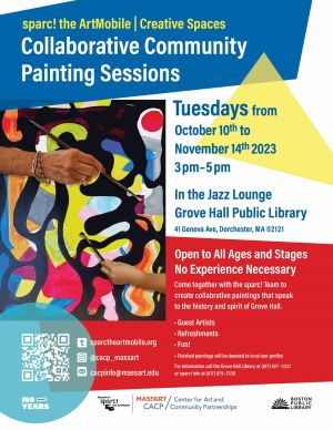 Come join sparc! the ArtMobile for Collaborative Community Painting Sessions at the Grove Hall Public Library in Dorchester.Folks of all ages and abilities are welcome to explore the intersections of art and community along with featured guest artists and refreshments!