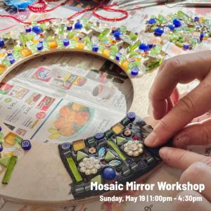 Spend a fun afternoon making a decorative mosaic mirror.In this workshop, you will learn how to design a beautiful round mosaic mirror (7 ‘’ in diameter).