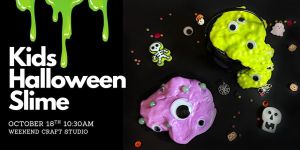 Let your kids enjoy a morning full of creativity and slimy hands-on fun!They’ll create their own spooky, creepy, ghoulish, one-of-a-kind slime to take home, with all materials provided and simple, step-by-step instructions with a class instructor.