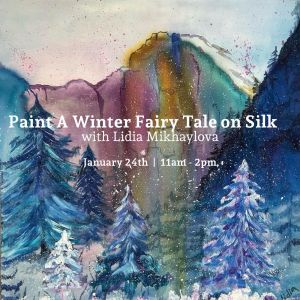 Imagine the brilliance of color flowing across silk, the freedom of your brush dancing with each stroke.Let your creativity pour out as we paint the magic of winter together in “Silk Painting: A Winter Fairy Tale,” a workshop led by artist Lidia on Friday, January 24, from 11:00 AM to 2:00 PM at the Arts Wayland Gallery.