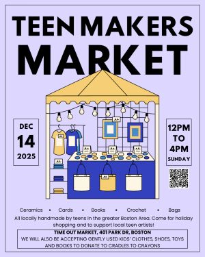 Come enjoy some holiday shopping at a Teen Makers Market, a teen-organized event that showcases the handiwork of local teen artists.Booths will have ceramics, handmade cards, jewelry, pins, crocheted goods, books, paintings, keychains and more for sale.