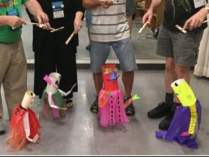 Each participant will construct a simple head/shoulder string marionette using readily available materials — so you can go home and make more!