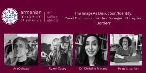 The panel, titled “The Image as Disruption and Identity,” is free and open to the public, and will take place in the Adele and Haig Der Manuelian Galleries on Saturday, September 23 at 2:00 pm, followed by a light reception.The Museum is also offering free admission for all visitors that weekend, along with free guided tours of “Ara Oshagan: Disrupted, Borders” to its members.