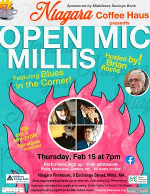 Open Mic Night at the Niagara Coffee Haus - Bring your talents and warm up a cold evening.In beautiful Millis, Massachusetts!
