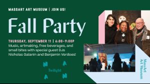 Welcome back MassArt and all!Following a summer of fun, slide into the semester with MAAM and friends during our annual Fall Party!