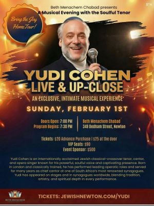 We invite you to join a special musical evening featuring the soulful and inspiring tenor Yudi Cohen — live and up close.Join us for an exclusive, intimate concert as Yudi Cohen shares his powerful voice and heartfelt melodies in a warm, uplifting setting.
