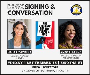 Join Frugal Bookstore for book signing event with author Hajar Yazdiha for her new book The Struggle for the People's King: How Politics Transforms the Memory of the Civil Rights Movement.In addition to signing copies of her book, Hajar will be in conversation with Amber Payne, Co-Editor in Chief of The Emancipator.