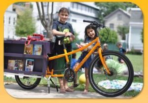 Meeting families in the park for stories and activities, the Book Bike models that reading is fun!