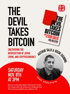 Join the Japan Society of Boston in welcoming Jake Adelstein, bestselling author of Tokyo Vice, for an inside look at his thrilling newest book, The Devil Takes Bitcoin: Cryptocurrency Crimes and the Japanese Connection.In conversation with Boston University’s Professor William Grimes, Jake will dive into the mysterious cryptocurrency heist and his experience as an investigative journalist in Tokyo, including opportunities for audience Q&A.