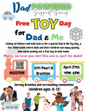 DadPowered Support Group: Free Toy Day for Dad and MeDads can come with their children ages 0 to 12, to spend quality time together while picking out a free toy to take home.