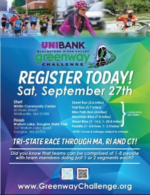 The mission of the UniBank Greenway Challenge is to promote the recreational quality of life in the Blackstone River Valley.