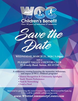 The Whitin Community Center (WCC) is proud to announce its upcoming Children’s Benefit, taking place on Wednesday, March 25, 2026, at 5:30 PM at the beautiful Pleasant Valley Country Club in Sutton, Massachusetts.This special evening will celebrate over 50 years of memories, milestones, and meaningful impact made through WCC’s children’s programs.