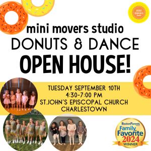 Join Mini Movers Studio at our Donuts and Dance Open House Event!Come see what make Mini Mover Studio Boston Parent Paper's Family Favorite Dance Studio for 2024!