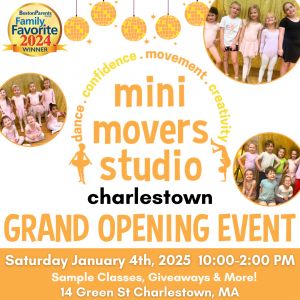 Join Mini Movers Studio, Boston Paper's Family Favorite Dance Studio, for their Grand Opening Event at their Charlestown Studio!Sample classes, giveaways and much more!
