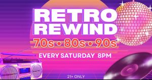 Saturday nights at Skyline Social just got a little nostalgic.Join us for Retro Rewind at 8PM and enjoy the best of the 70s, 80s, and 90s music.