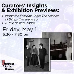 Join us for a special Presentation and Exhibition Preview celebrating the opening of our two new Spring and Summer temporary exhibitions: Inside the Faraday Cage: The Science of Things That Aren’t So and a mini-exhibit A Tale of Two Pianos.Evening program: