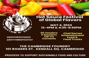 Join us on Sat May 04, 2024, for 2 sessions: 12-4 pm; and 4:30-8:30 pm at The Cambridge Foundry, 101 Rogers Street, Kendall Square, Cambridge for a day filled with spicy goodness.