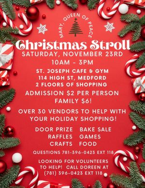 Mary Queen of Peace Parish is hosting their annual Christmas Stroll Craft Fair and Festival at the St Joseph Parish Hall on Saturday, November 23, from 10:00am-3:00pm.Over 30 vendors will be represented to help you get started with your holiday shopping.