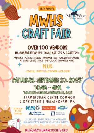 Info changes frequently. We cannot warrant it. Verify with MetroWest Humane Society 18th Annual Craft Fair before making the trek. If you find an error, please report it...