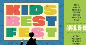 KidsBestFest is a week-long movie festival for kids and adults with free admission held during the spring school break at the Academy of Music Theatre.We show one movie a day and kick off the festival on Monday, April 15, 2024, at 11:00 AM, with doors open at 10:30 AM.