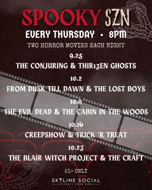 Info changes frequently. We cannot warrant it. Verify with Spooky SZN at Skyline Social before making the trek. If you find an error, please report it...