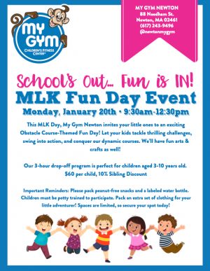 School's Out, Fun's In!This MLK Day, My Gym Newton invites your little ones to an exciting Obstacle Course-Themed Fun Day!