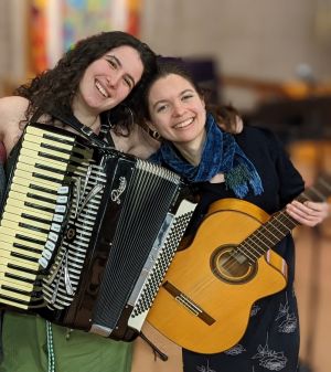 Boston Synagogue is so so pleased to invite you for a cozy Shabbos singalong with the wondrous klezmer musicians of Levyosn — Adah Hetko on guitar, and Kaia on accordion.