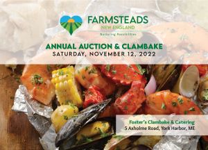 After two years, Farmsteads of New England is excited to be back in person for our Annual Auction & Clambake. Join us on November 12th!This year’s event will feature delicious food, great live & silent auction items, and opportunities to learn about Farmsteads and support your support for our mission.