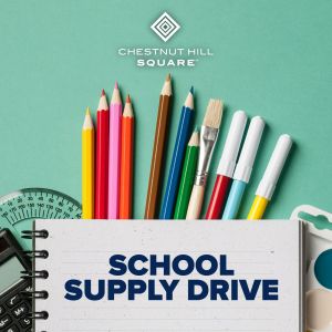 Chestnut Hill Square is collecting school supplies for School on Wheels of Massachusetts now through August 27, 2023.Donations can be dropped off in the marked donation bin located in Starbucks at the center.