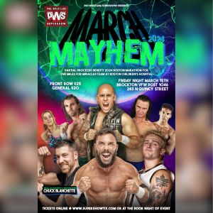 Pro Wrestling Supershow returns to Brockton VFW Post 1046 on Friday Night March 15th for March Mayhem 2024.A very special evening with partial proceeds benefitting Boston Childrens Hospital Miles for Miracles Marathon Team.