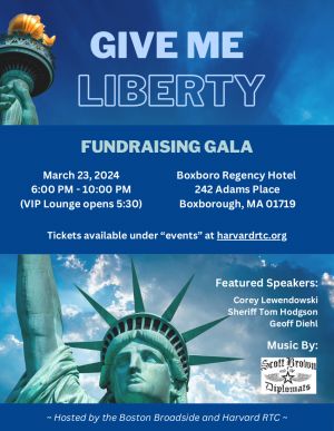 Join us for an extraordinary evening at the Give Me Liberty Fundraising Gala, where you can enjoy a night of camaraderie and support our local candidates.The evening commences with a delightful dinner, setting the stage for our esteemed guest speakers: Corey Lewandowski, Sheriff Tom Hodgson, and Geoff Diehl.