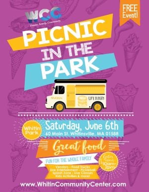 The Whitin Community Center is thrilled to announce the return of its beloved annual event, Picnic In The Park, to be held on Saturday, June 6, 2026, in the expansive and beautiful Whitin Park, 60 Main Street, Whitinsville, MA 01588.Spanning 7.5 acres of lush green space, Whitin Park will play host to a day filled with fun, food, and festivities for the entire family from 10:00AM to 2:00PM.