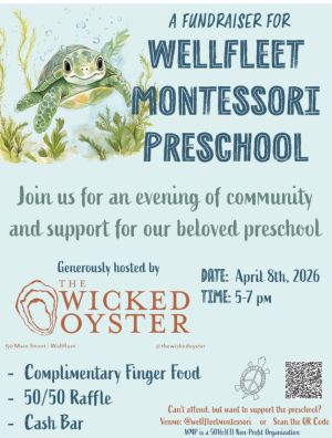 Wellfleet Montessori Preschool is excited to partner with The Wicked Oyster for a fun and welcoming evening that brings the community together.Guests can enjoy complimentary bites, delicious drinks, and a lively atmosphere while connecting with others.