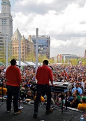 At Dewey Square Park (Summer Street to Congress Street).