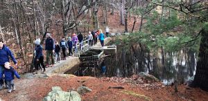 Parking is at Hale's Trading Post. This family friendly hike will leave from there at 5:30 PM and is expected to take 30–45 minutes. Light refreshments will be available afterward. Appropriate footwear is recommended. All ages are welcome, but please note the trail is not accessible to strollers.