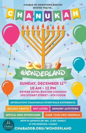 THIS SUNDAY: CHANUKAH WONDERLAND!This pre Chanukah family event will offer creative holiday crafts, sensory activities, a one-of-a-kind interactive Chanukah storywalk, special children's entertainment, hot latkes, and lots of fun!