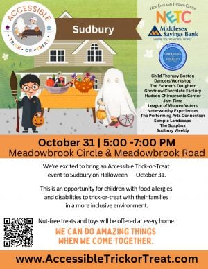 The Town of Sudbury's Commission on Disability is bringing an Accessible Trick-or-Treat to Sudbury, Mass.It will take place on Tuesday, October 31, 5-7pm on Meadowbrook Circle and Meadowbrook Road.