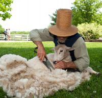 The sheep get their yearly 'haircuts' this weekend. Farmers shear the sheep, and costumed history interpreters demonstrate the entire wool textile process, from scouring and carding the wool to spinning, knitting and weaving the handspun wool yarn into a blanket.