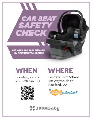 UPPAbaby is conducting a Car Seat Safety check that will occur at Goldfish Swim School.Attending the Safety Check is free and the event will take place on 6/21/2022 at 180 Weymouth Street in Rockland, MA.