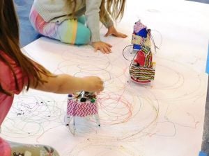 Preregister 1:00pm – 2:30pm, Indoors Make a unique piece of art with a motorized contraption!In this 90-minute session we’ll create and decorate a simple DIY robotic friend made of spinning and wiggling motors, markers, tape, and a variety of recycled and repurposed materials.