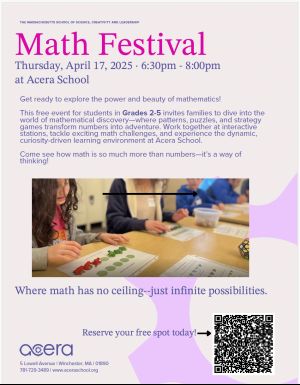 Math Festival at Acera SchoolApr 17 (Thursday) 6:30pm to 8pm