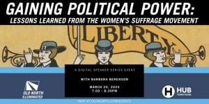 Tune in on Zoom to hear Berenson discuss how local abolitionists opposed women’s exclusion from political life and how after the war the Boston-based American Woman Suffrage Association led campaigns across the country.
