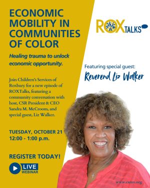 Children’s Services of Roxbury (CSR) is thrilled to welcome the renowned Reverend Liz Walker as a featured guest in its ROXTalks series.On Tuesday, Oct. 21, from 12 to 1 p.m., CSR President and CEO Sandra M. McCroom and Rev. Walker will explore the connections between trauma and economic mobility through a virtual community conversation.