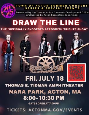 NARA Park is located off Ledge Rock Way and Quarry Road. GPS: 71 Quarry Road, Acton, MA -- parking is free and located near the amphitheater.