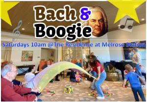 Bach & Boogie is a weekly, 45-minute intergenerational music and movement class designed for toddlers (ages 0–4) and seniors, held every Saturday inside senior living communities.It promotes connection between generations, allowing little ones to play and explore through music while residents enjoy the energy and interaction.