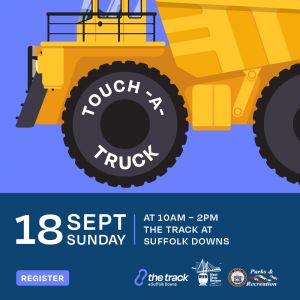 Join us for Touch-a-Truck at The Track on Sunday, September 18th from 10am – 2pm at Suffolk Downs.Walk along the track for an up-close view of tractors, trucks, diggers, police cars, and fire engines.