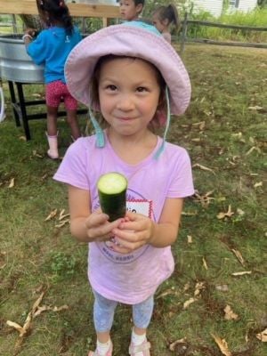 Little farmers and their grownups should wear closed-toe shoes and clothes that can get a little dirty.