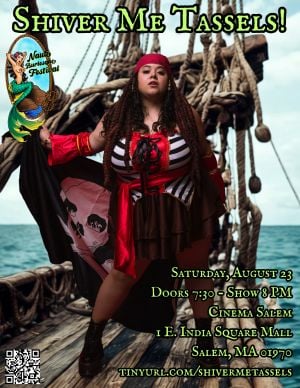 Burlesque performers from near & far set sail for Salem this August to perform in the 'Shiver Me Tassels!' Showcase!Set against the backdrop of Massachusetts’ historic North Shore, the Nauti Burlesque Festival is a bold and glittering celebration of burlesque, where nautical meets naughty.